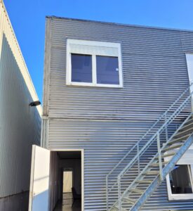 Totaal 10 nette units te koop/huur aangeboden. Totaal circa 180m2 te gebruiken als kantoor, klaslokaal of woonunit/zorgunit. Units zijn verkrijgbaar in 2 setjes van 5. Mogelijkheid tot verdieping doormiddel van 2 gegalvaniseerde buitentrappen.