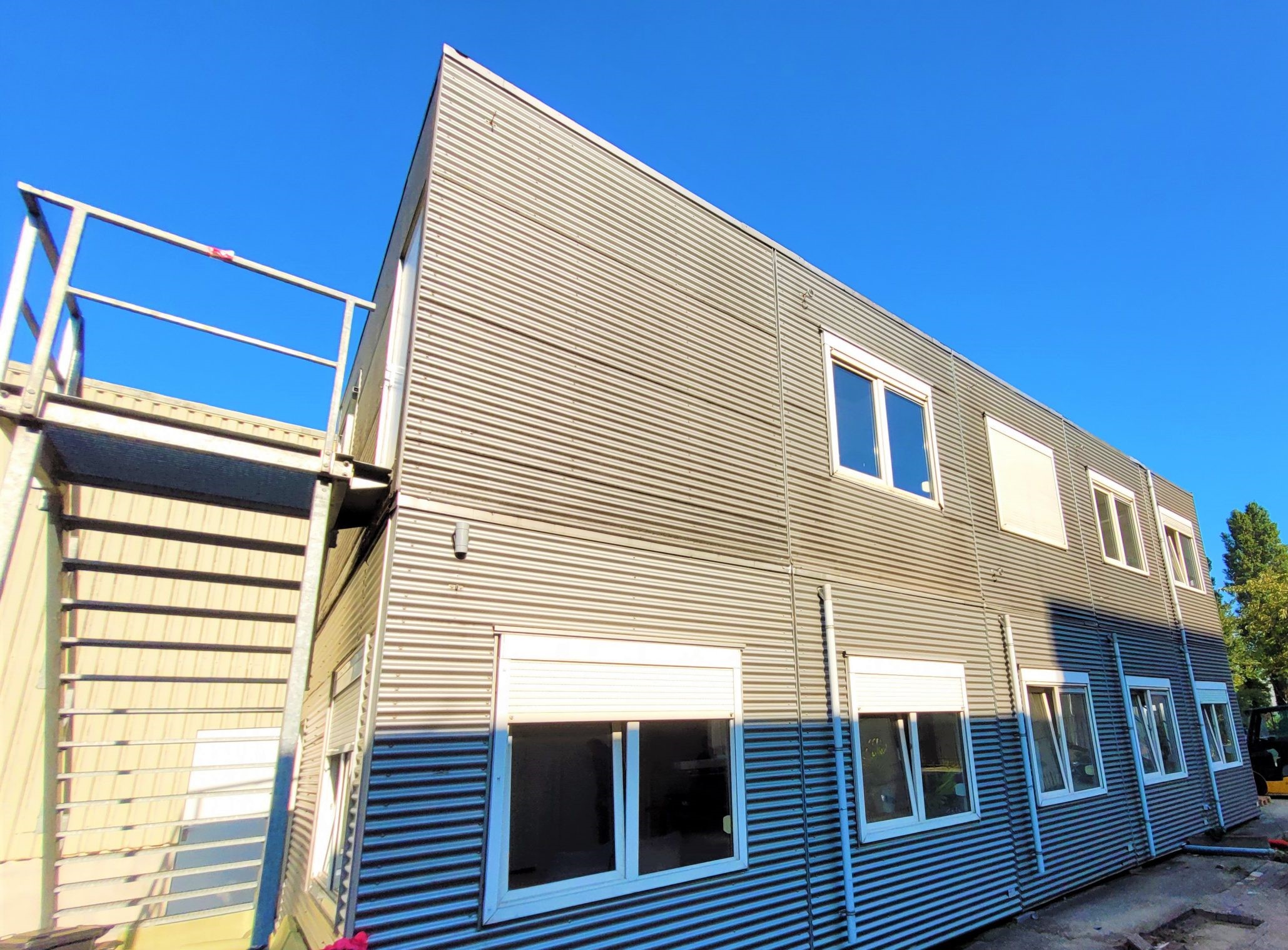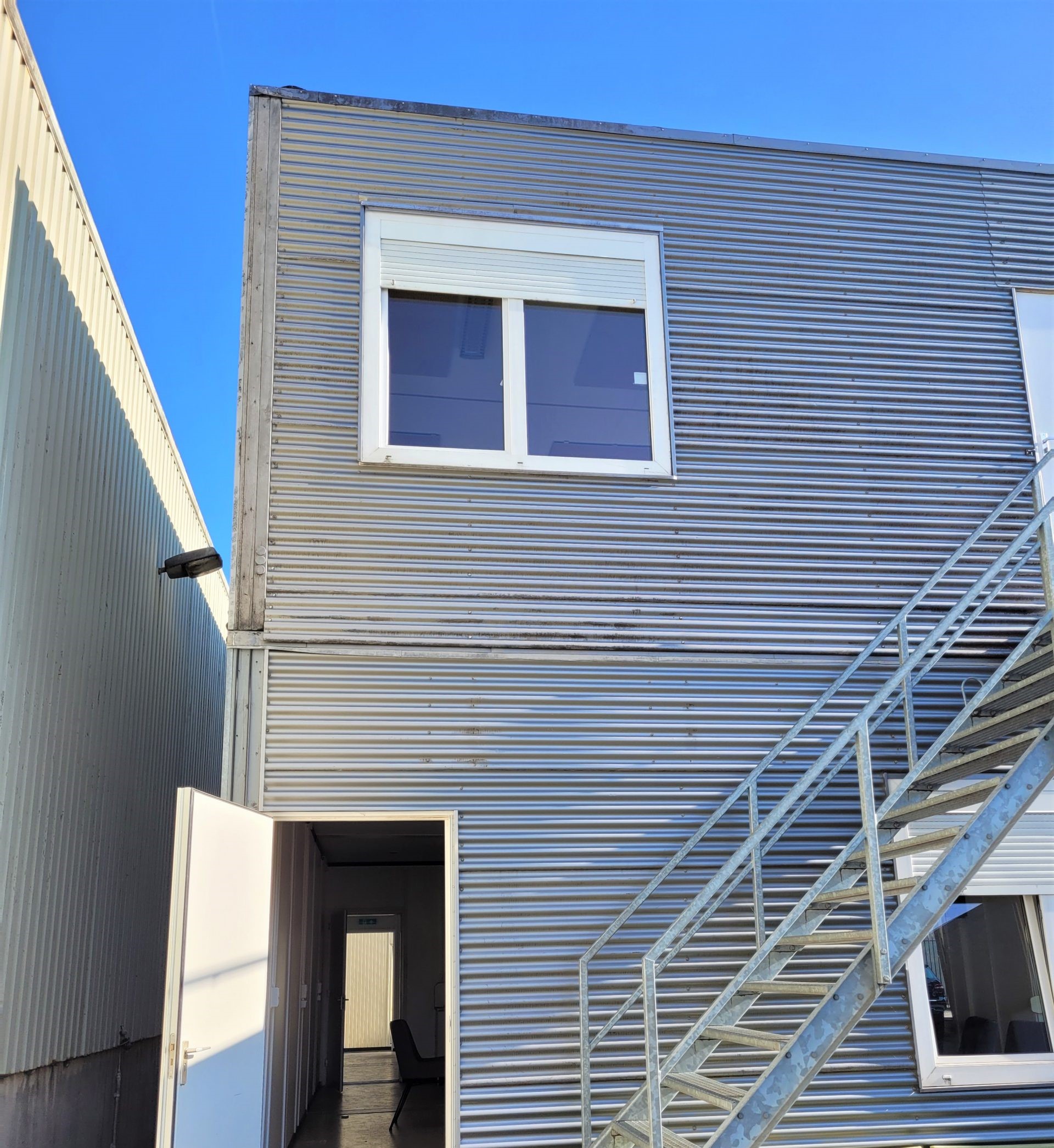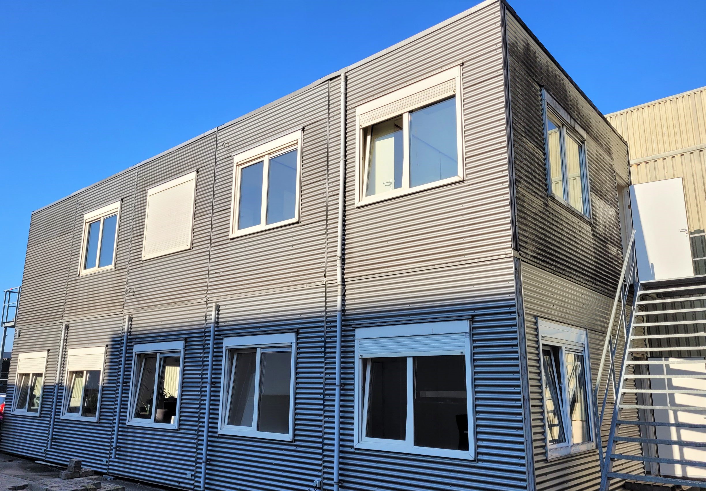 Totaal 10 nette units te koop/huur aangeboden. Totaal circa 180m2 te gebruiken als kantoor, klaslokaal of woonunit/zorgunit. Units zijn verkrijgbaar in 2 setjes van 5. Mogelijkheid tot verdieping doormiddel van 2 gegalvaniseerde buitentrappen.